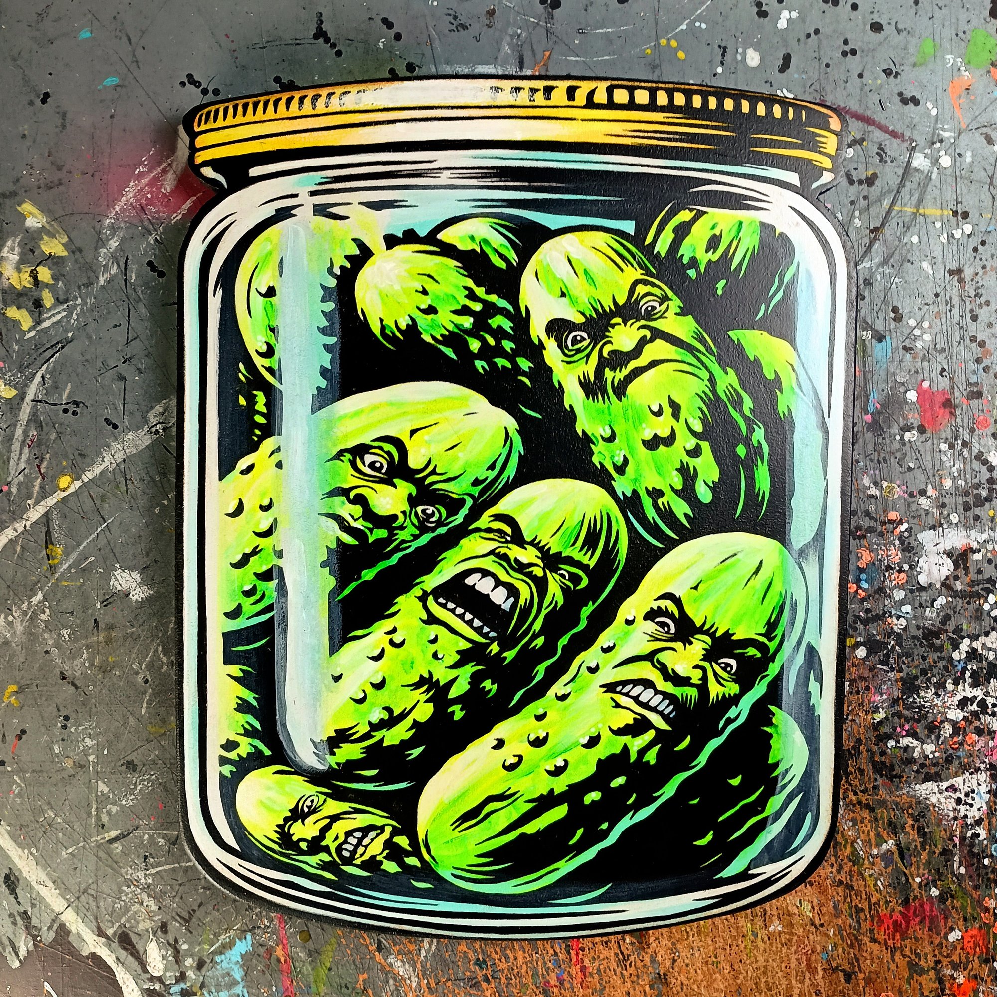 Here's a piece I made to celebrate National Pickle Day! It's cut out of 3/4" particle board plywood and hand-painted with acrylics. It measures in at around 12.5" x 16". Don't dill-ay! This one won't last long! Free Shipping in the USA!