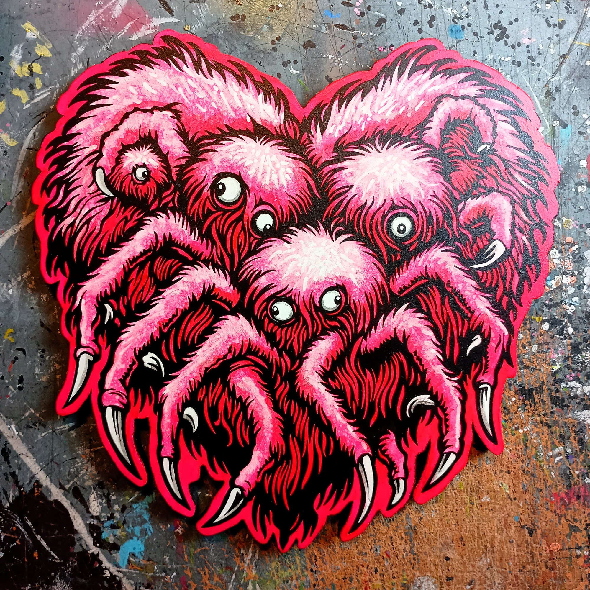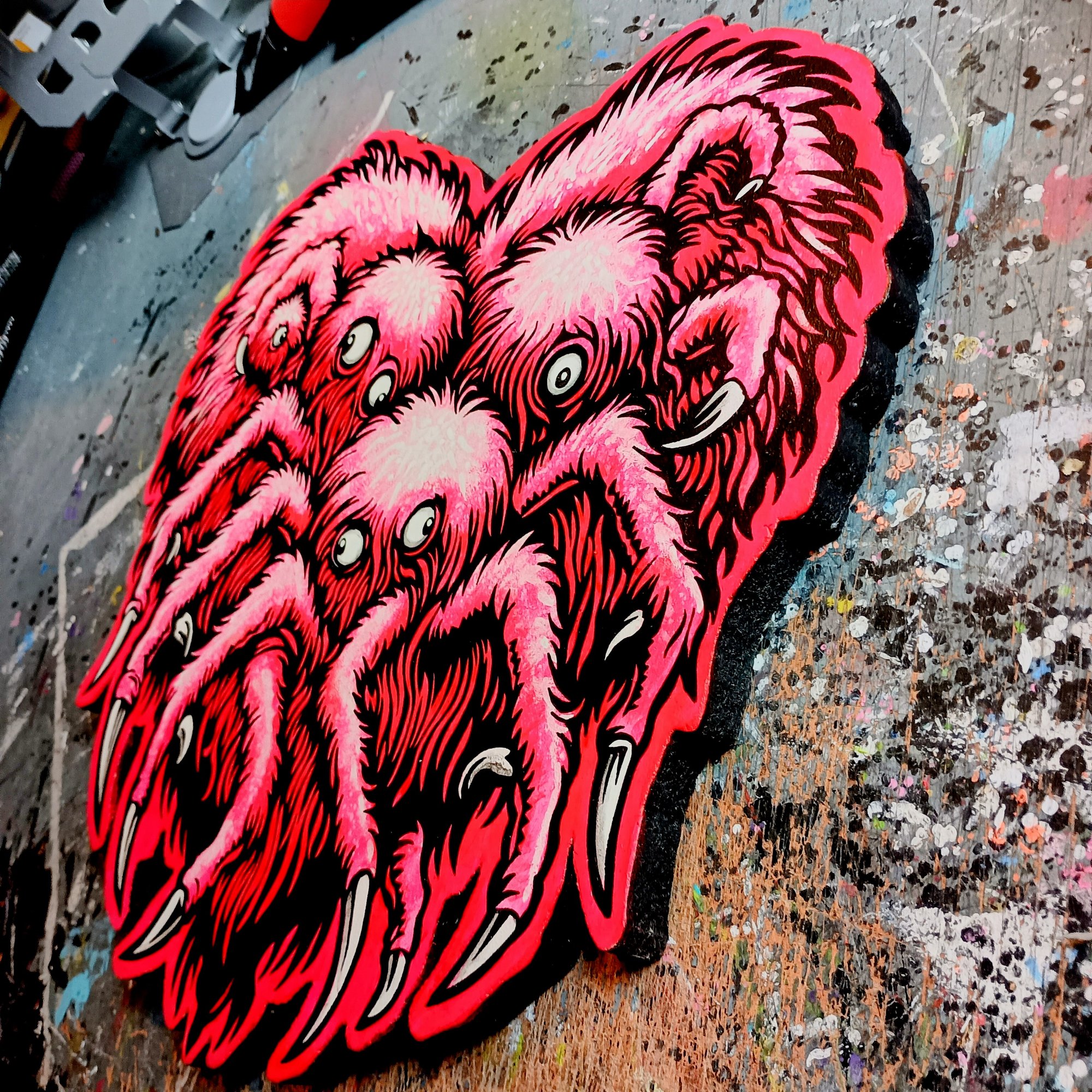 This painting really showcases Adam's use of bold colors and graphic details that make it feel alive. Whether you're a fan of horror, monsters, weird pop art, or just looking for a unique and striking art piece, this painting is sure to be a conversation starter in any space.